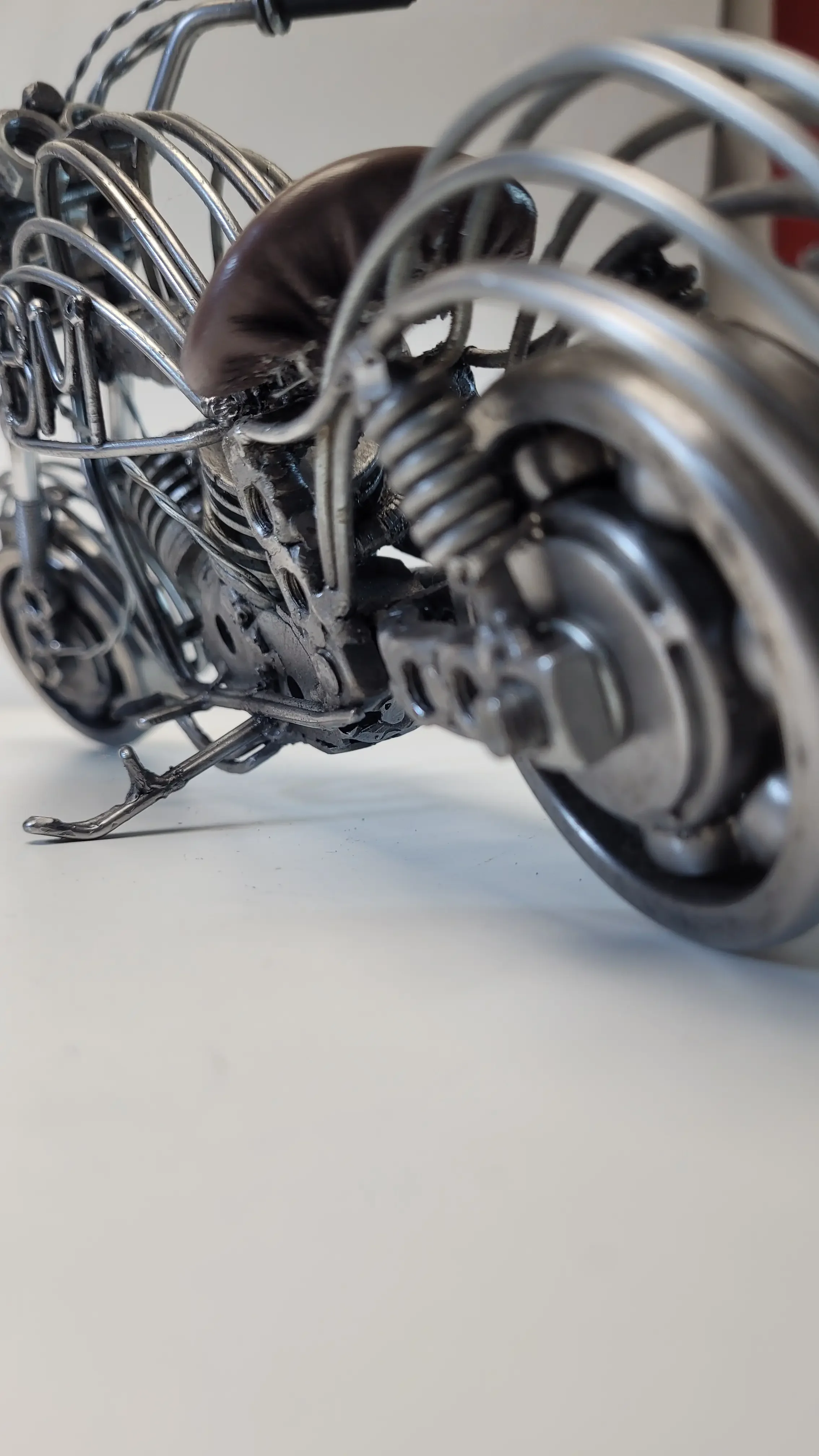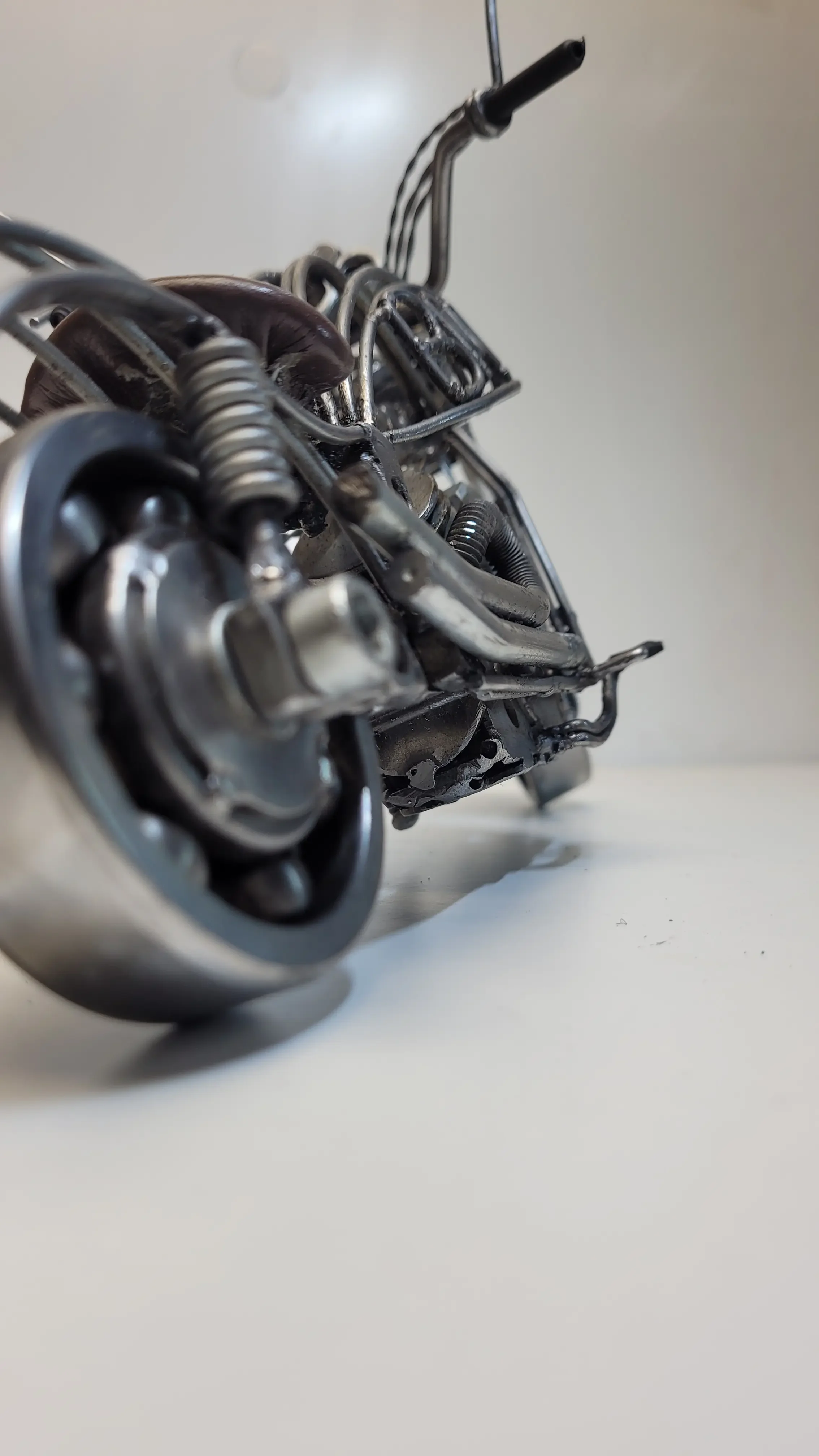 This commissioned piece was crafted as a personalised gift, featuring the recipient’s initials incorporated onto the tank. The artist paid meticulous attention to detail, ensuring the welded sculpture not only captured the essence of the subject but also conveyed a meaningful connection through the customisation. The initials add a unique touch, making the piece a distinctive and cherished keepsake.