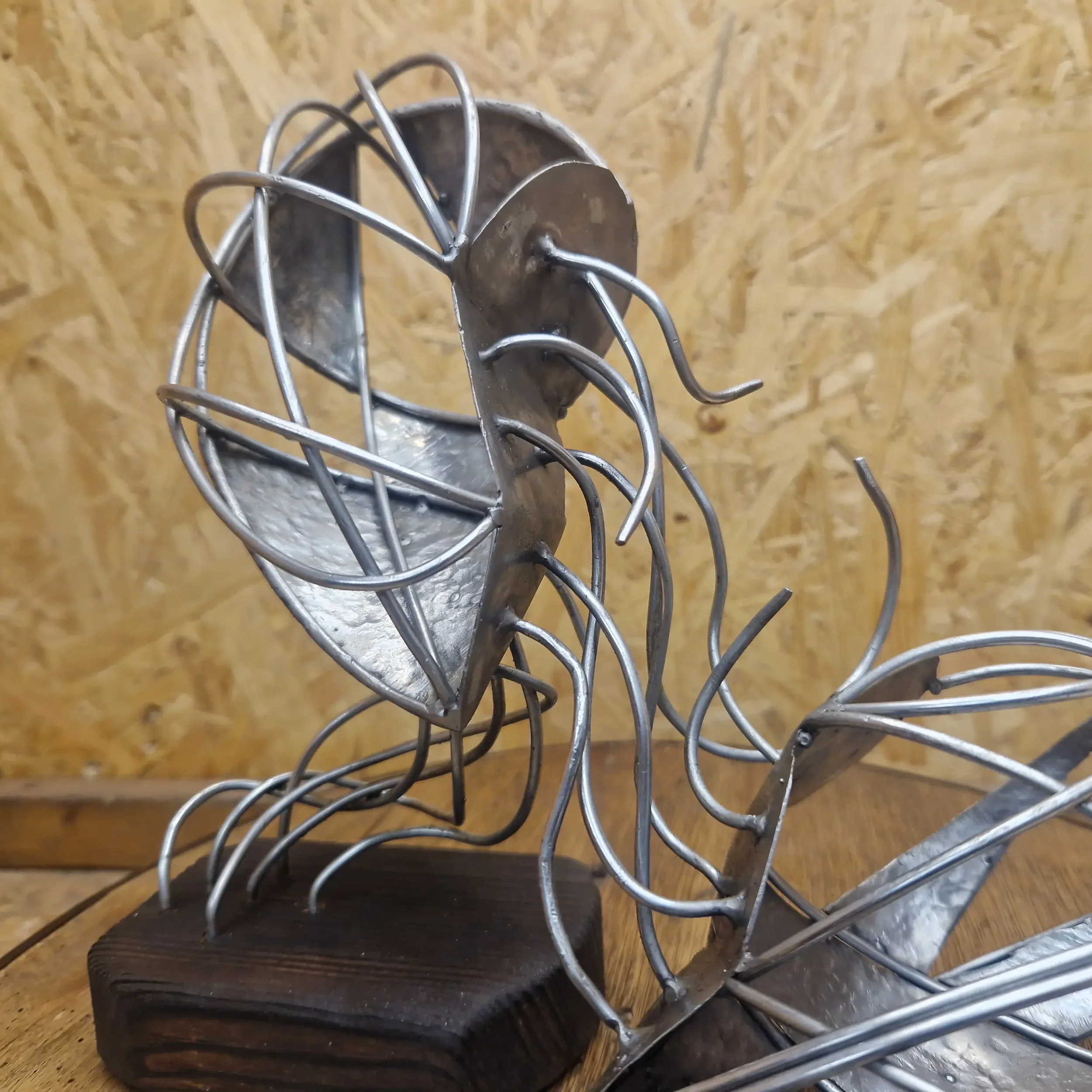 The torn heart sculpture, crafted meticulously from steel, embodies a striking fusion of strength and vulnerability. Its jagged edges and fractured design evoke the raw emotion of heartbreak, while the robust metal material symbolises resilience and endurance. The interplay of smooth and rough textures highlights the contrast between pain and healing, making the sculpture a powerful visual metaphor for the complexities of human emotion. Through its industrial medium, the artwork commands attention, inviting viewers to reflect on the beauty found within imperfection and recovery.